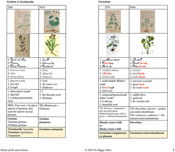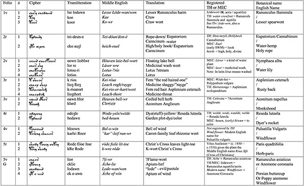 Presenting a decoding of the Voynich cipher. Showing how the deciphering can be used to reveal plant names and identify the herbs illustrated. Questioning if the theory leads to a readable text. Looking into the Younger Futhark. (READ)